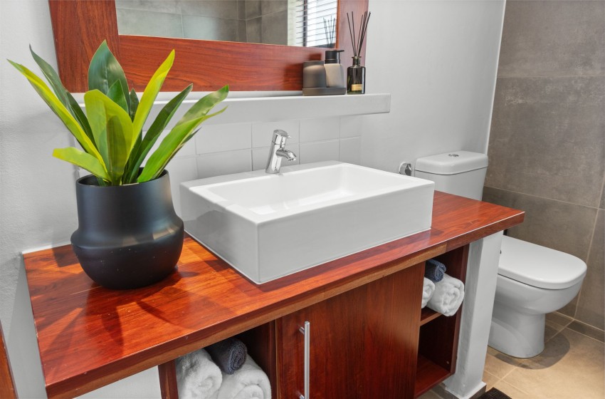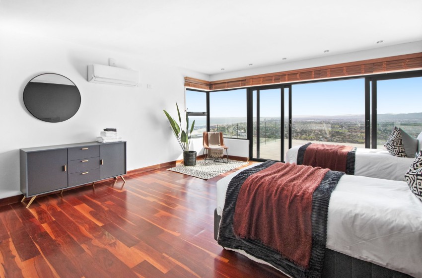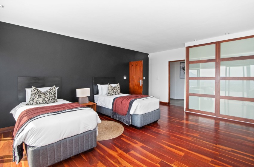 Discover this picture-perfect coastal retreat at Restio View 11 in Gordon’s Bay. It’s a perfect holiday destination for up to six people. This beautiful house offers three spacious bedrooms, each with an ensuite bathroom. The master bedroom features a king bed, a balcony and air conditioning. The second bedroom includes air conditioning and king bed, while the third bedroom has two single beds and air conditioning.