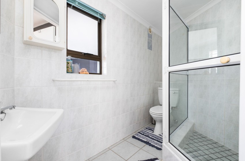 Secure parking is provided on the ground floor, though guests should note that access to the apartment requires climbing approximately 12-15 stairs. The peaceful setting of this self-catering property is balanced with the convenience of being close to nearby restaurants, shopping centres, and easy access to the N2 highway, making trips to Cape Town and beyond effortless.