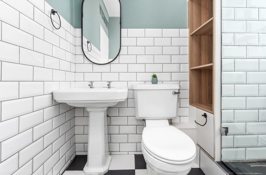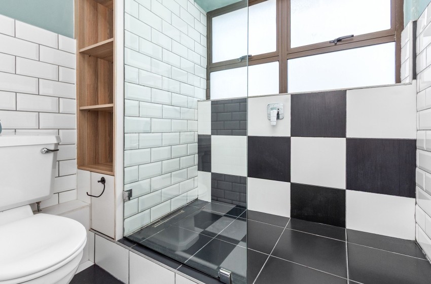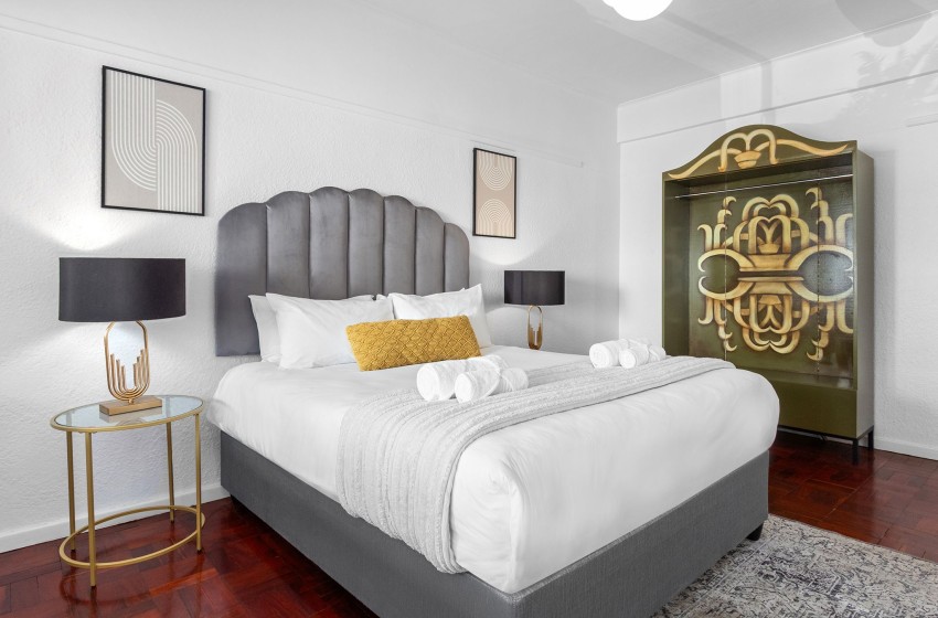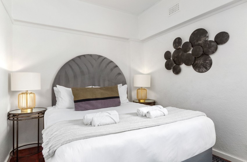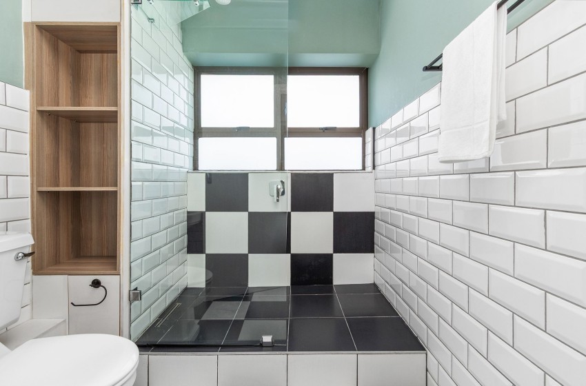 The bedrooms are elegantly designed, with the main bedroom featuring a queen-size bed with nightstands on either side and a large window flooding the room with natural light. The second bedroom also includes a queen-size bed. The bathroom is fitted with a spacious shower, a toilet, and a washbasin. The shower is slightly elevated, so you’ll need to step up to get in. Linen and towels are included with your stay.