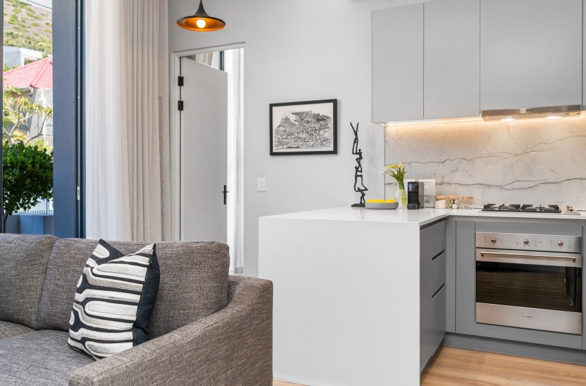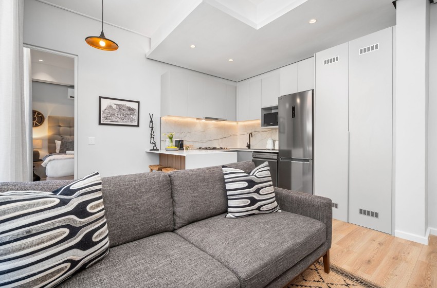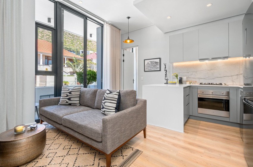 Located in the sought-after suburb of Green Point, you will find this cosy one-bedroom apartment that comfortably accommodates up to two guests, boasting uninterrupted views of the iconic Signal Hill.