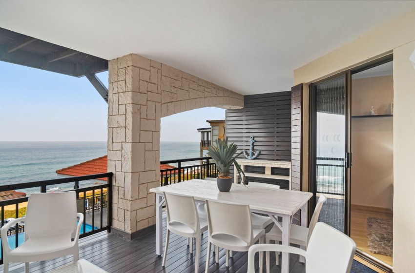 Located in Ballito's Westbrook, you will find this cosy three-bedroom offering open plan living with a comfortable balcony overlooking the pool, boasting lovely sea views.