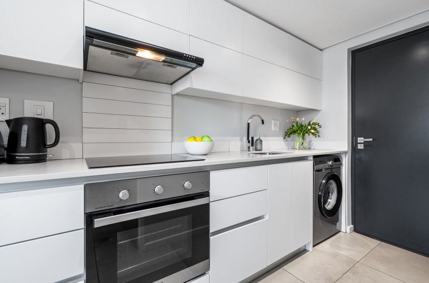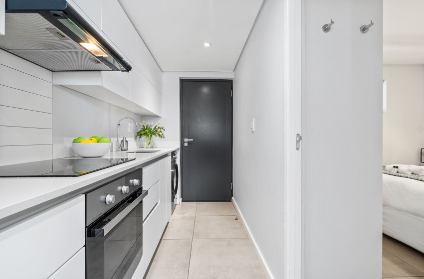 As you enter Beach Break 17, you will be greeted with a stylish, fully equipped kitchen with a fridge, microwave, dishwasher, toaster, and under-counter oven, which makes this apartment a perfect self-catering stay for guests seeking to prepare their own meals on vacation.