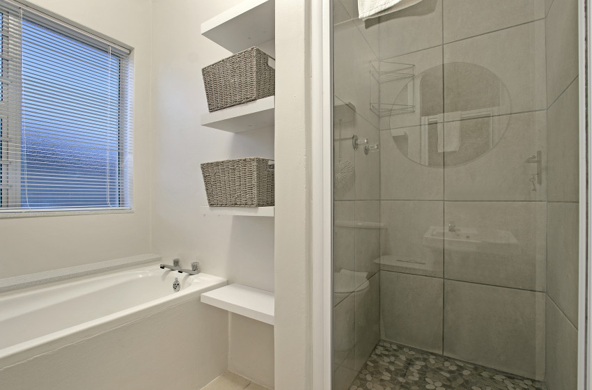 This beautiful two-bedroom apartment comes equipped with everything you could need for a self-catering holiday in Cape Town. The main bedroom is stylishly decorated with bright accents and has a queen-size bed. The second bedroom has two single beds and features amazing sunlight to compliment the seaside theme.