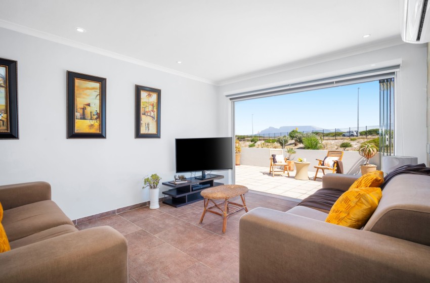 This lovely coastal semi-detached two-bedroom house is located in a secure complex in Big Bay, Bloubergstrand, Cape Town, offering comfortable accommodation for up to four guests.