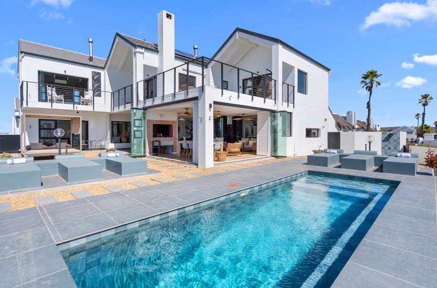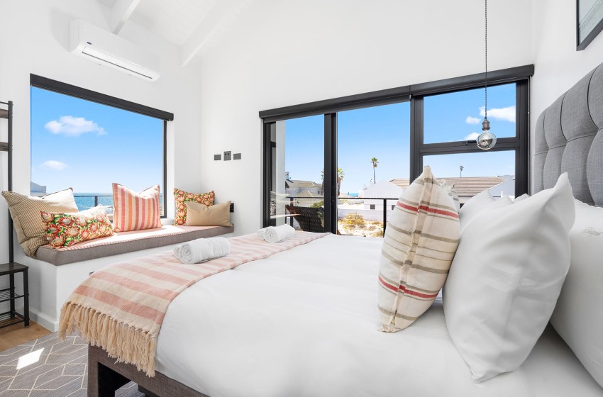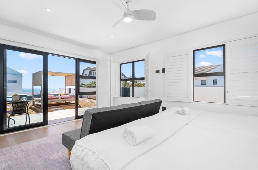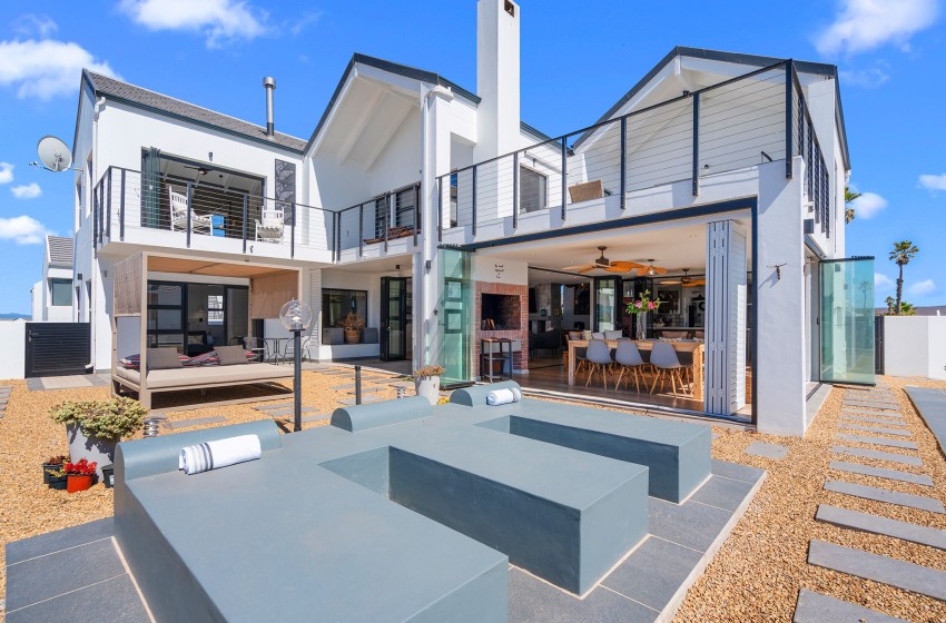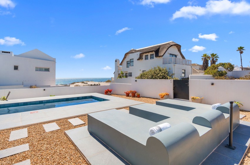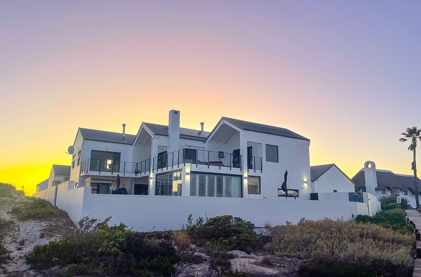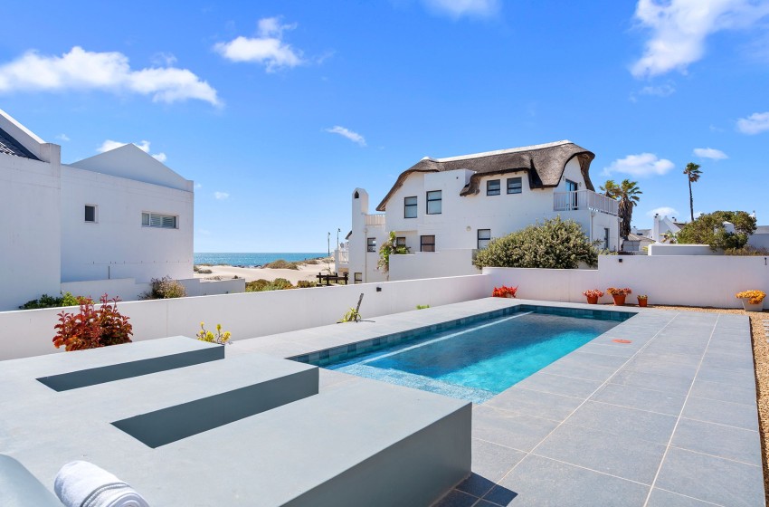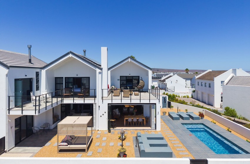 Situated along Cape Town’s scenic West Coast, the town of St Helena Bay is home to Shelley Point, where you will find this soulful, stunning, newly built ocean-side four-bedroom home, accommodating up to eleven guests in comfort and style. Set within a secure estate, this property offers peace of mind along with its luxurious coastal charm. Apart from this homes direct access to the exquisite beaches via a boardwalk from the property, it is also a short distance from restaurants and convenience stores. Shelley Point is renowned for its nine-hole golf course, clubhouse restaurant, golden mile beach that stretches for kilometres, surfing, fishing, kayaking and bodyboarding. The area is known for excellent whale and dolphin watching year-round, with these magnificent creatures frequently seen in the bay.