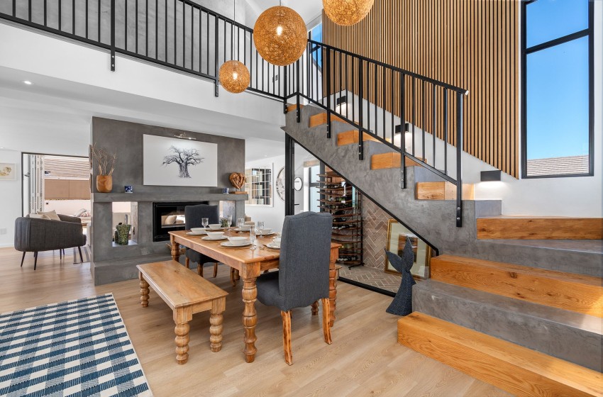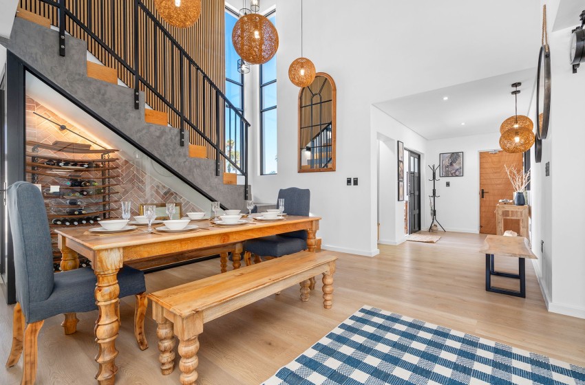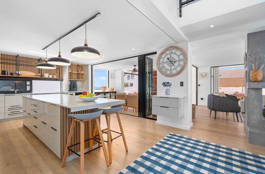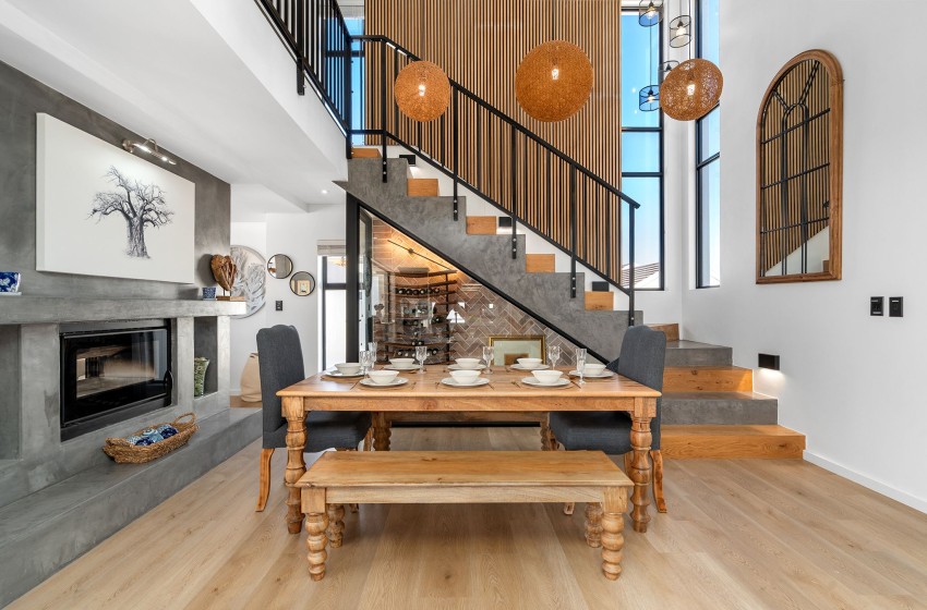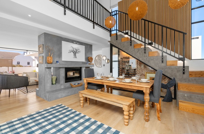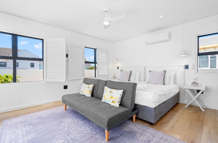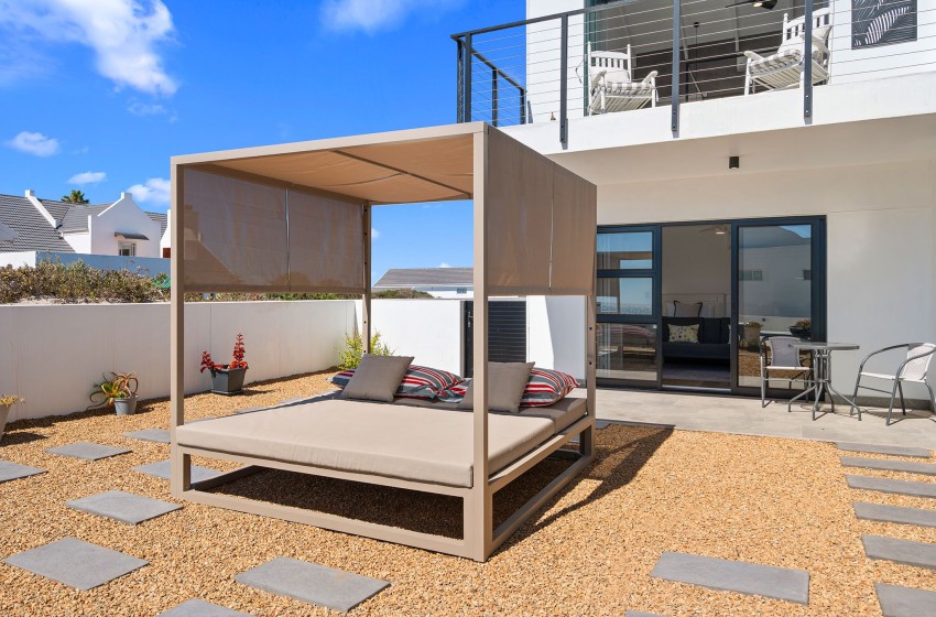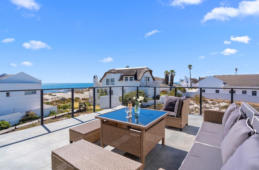 Situated along Cape Town’s scenic West Coast, the town of St Helena Bay is home to Shelley Point, where you will find this soulful, stunning, newly built ocean-side four-bedroom home, accommodating up to eleven guests in comfort and style. Set within a secure estate, this property offers peace of mind along with its luxurious coastal charm. Apart from this homes direct access to the exquisite beaches via a boardwalk from the property, it is also a short distance from restaurants and convenience stores. Shelley Point is renowned for its nine-hole golf course, clubhouse restaurant, golden mile beach that stretches for kilometres, surfing, fishing, kayaking and bodyboarding. The area is known for excellent whale and dolphin watching year-round, with these magnificent creatures frequently seen in the bay.