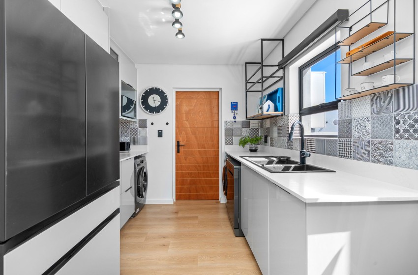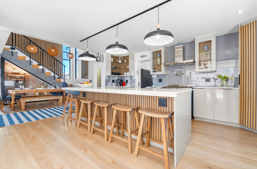 Upon entering, guests are welcomed by a spacious, avantgarde living space featuring a dining area alongside a fully equipped, contemporary kitchen catering for all your culinary needs.