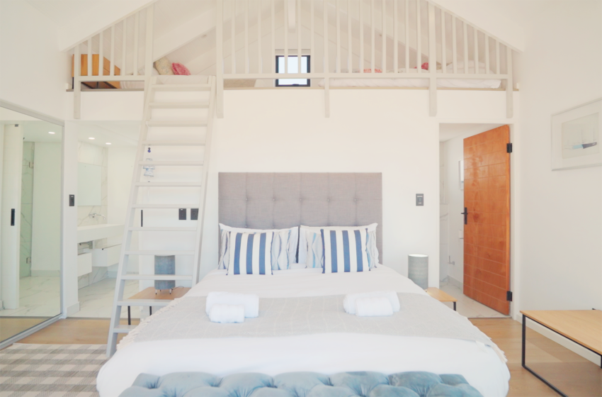 The private garden boasts ocean views, a sparkling heated swimming pool, six sun loungers and a luxurious double day bed, allowing guests to make the most of those hot summer days. An open upstairs patio is the perfect area to comfortably enjoy sundowners on the outdoor lounge furniture or swing chair while experiencing the most exquisite sunsets.