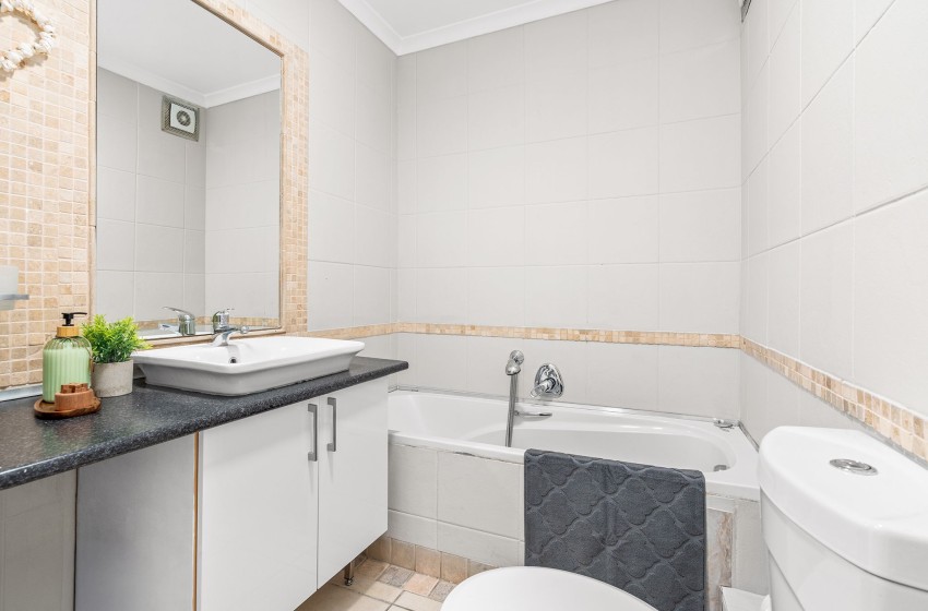Guests will have access to a BBQ or braai area, a communal swimming pool, as well as one designated covered parking bay. Some local attractions include the brand-new Waterworld Strand and Nice Ice Cream Parlour and the Strand Pavilion, only a stone's throw away, where oceanfront restaurants, a daily market, and some of the best ice cream in the Western Cape can be enjoyed.