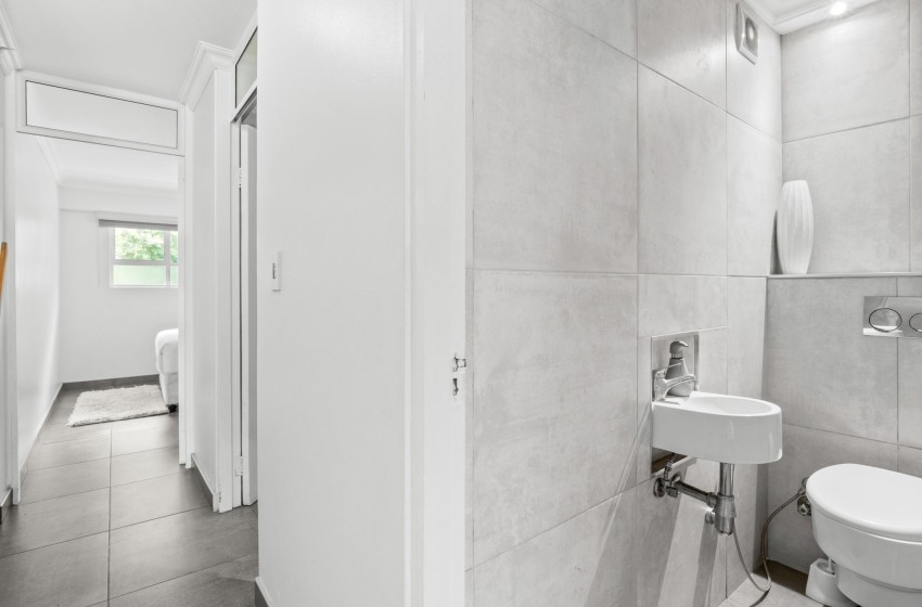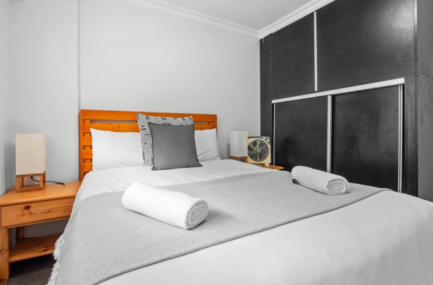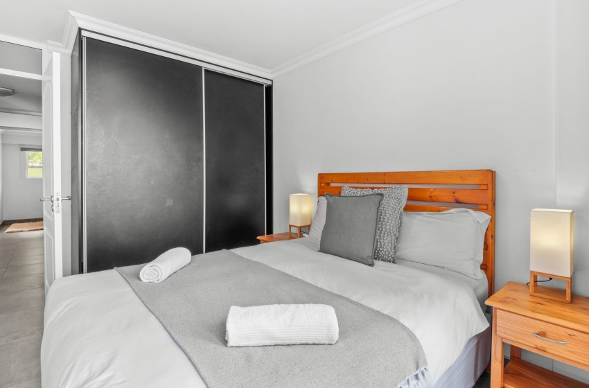 Both bedrooms offer guests comfortable double beds, with shared bathroom facilities that include a shower, toilet, and basin. The main bedroom offers direct access to the balcony through glass sliding doors, while the second bedroom has large windows that allow for an abundance of natural light and fresh air.