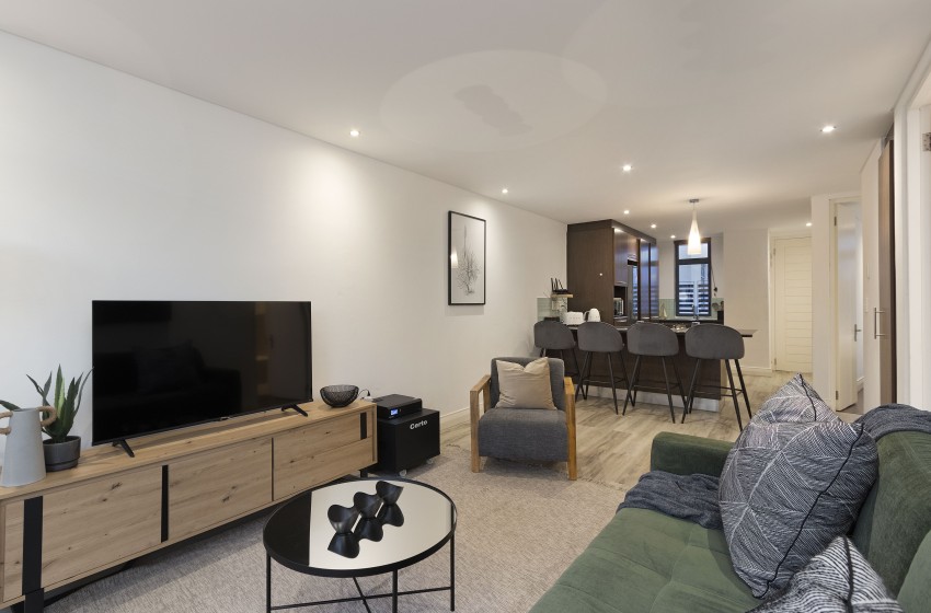 If you’re on the market for a beautiful space to temporarily call home, Eden on the Bay 179 is the perfect balance between style and comfort situated at a prime location along the iconic Blouberg shores. This modern two-bedroom, two-bathroom apartment can comfortably accommodate up to 4 guests, making it the ideal rental for holidaymakers or business travellers wanting a tranquil respite not too far from the bustling City Centre.