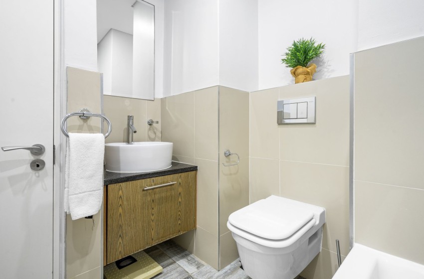 Both bedrooms are generously sized and feature sliding doors, each furnished with a queen bed. One of the bedrooms includes balcony access - what better place to enjoy your morning coffee? Both bathrooms continue the home’s stylish decor, with one featuring a shower and the other a bathtub.