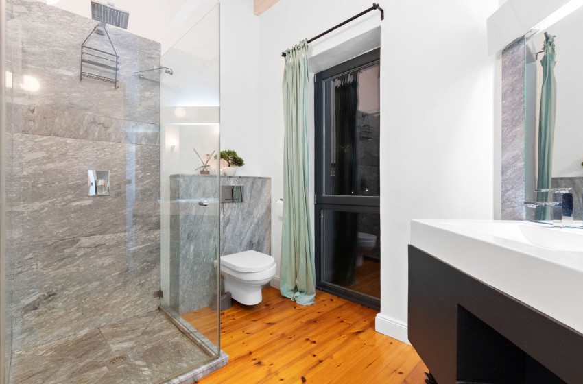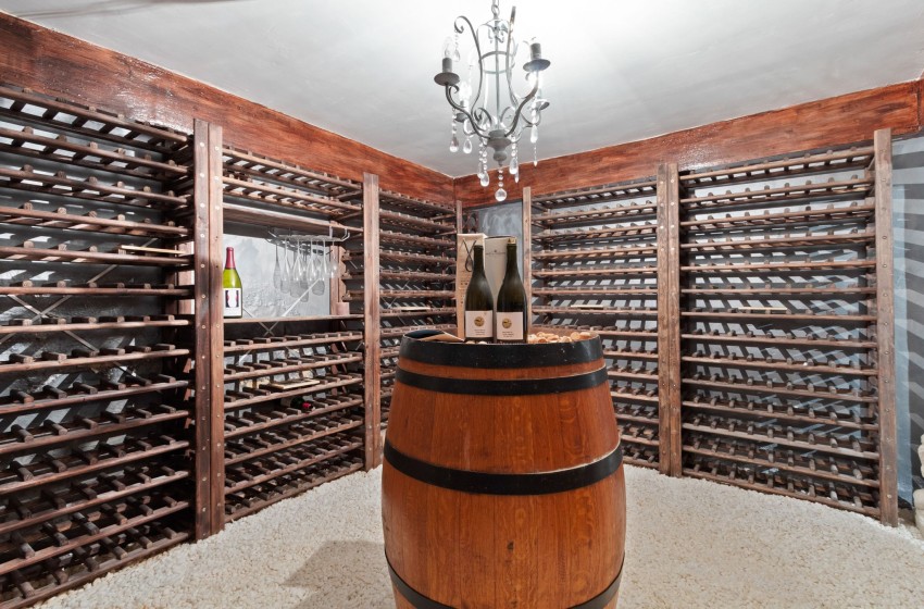 This exceptional villa offers a variety of leisure and entertainment spaces across three levels. On the first floor, guests can enjoy a chic games room with a pool table, a conveniently located guest toilet, and seamless access to a patio featuring plush seating, a private pool, and a braai area perfect for alfresco gatherings. The lower basement level reveals a character-rich vintage wine cellar with additional storage, while the second floor boasts an elegant guest lounge and direct access to a rooftop terrace, offering breathtaking views and the ultimate setting for relaxation.