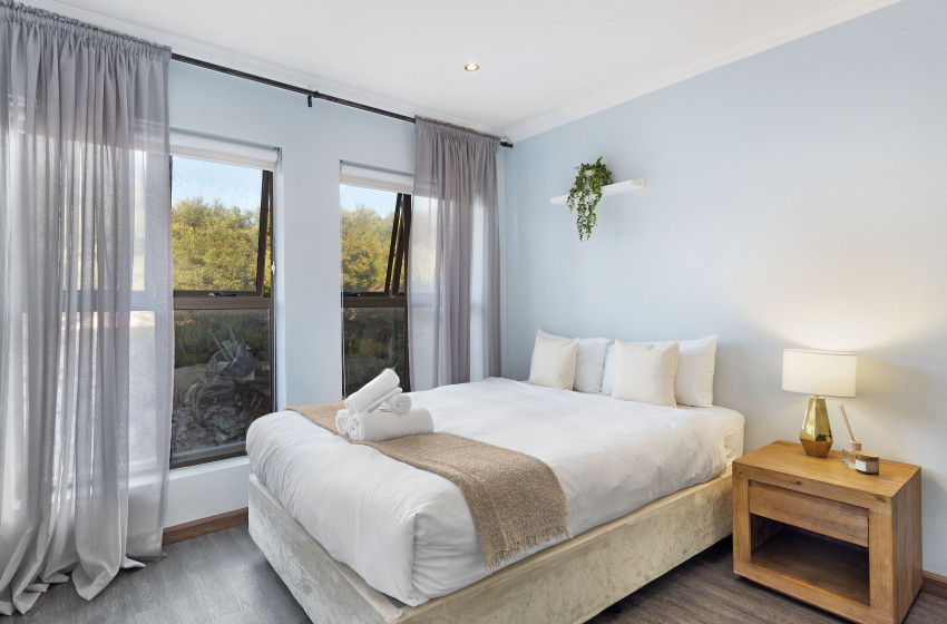 This apartment offers 3 cozy bedrooms and 2 immaculate bathrooms. 2 of the bedrooms include double beds and 1 bedroom offers a queen-size bed. The main bedroom has a glass sliding door leading onto a quaint balcony area. The first bathroom is an en-suit while the second bathroom is shared; both include a bath, shower, toilet and basin. All linen and towels are provided with your stay.