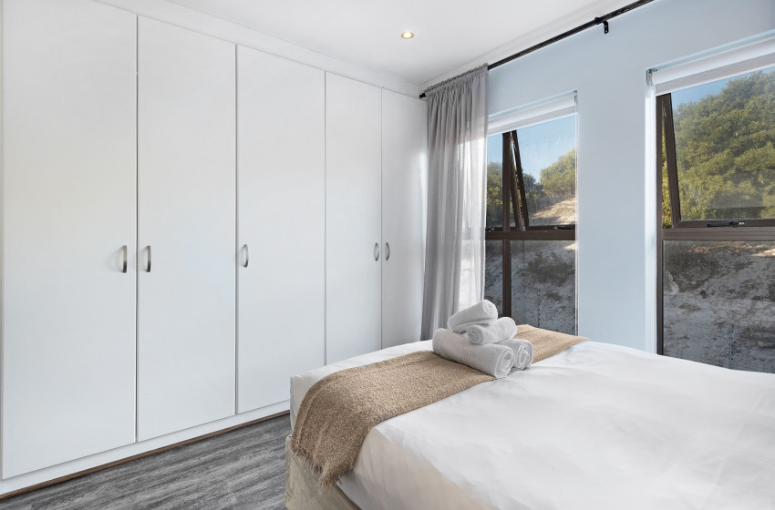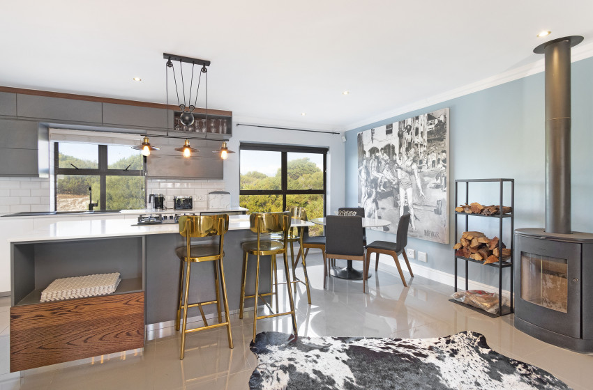 28 Island View is fully equipped with everything guests would require for an unforgettable self-catering stay. The living areas are warm and inviting and consist of a fully equipped kitchen complete with a coffee machine and wine fridge, a comfy lounge area featuring a flat-screen TV, DSTV, and Wifi as well as an indoor fireplace, and 2 intimate dining areas where you can enjoy all your favourite dishes. Following on from the lounge area is an enclosed sunroom as well as a balcony area equipped with a built-in braai.