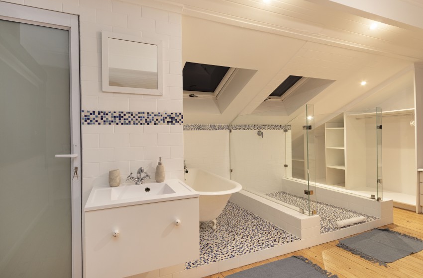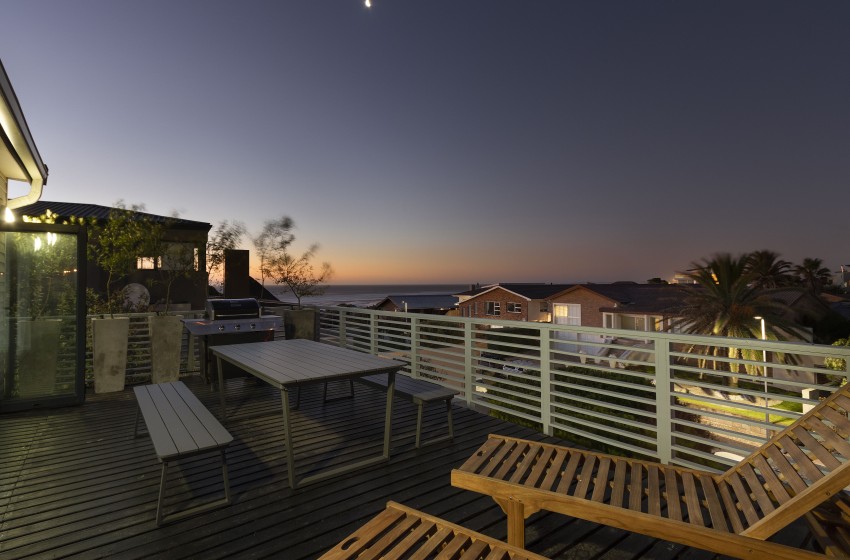 The two decks that Korhaan House has to offer, boast stunning sea views, space for outdoor dining and a gas braai. A beautiful indigenous garden on 2 levels can also be found with its large fire pit and seating, for the whole family to sit around and enjoy. A private servitude path leads directly from the garden onto a beautiful unspoilt beach that offers long walks and stunning Table Mountain views. A leisurely walk up the beach and you will find many varied excellent restaurants and coffee shops.