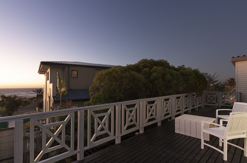 The living area on the first floor boasts a fully equipped kitchen, including a dishwasher, washing machine and a tumble dryer. A spacious open plan dining/living room are fitted with stacking doors that open onto a deck, where one can take in the fresh ocean air. A Smart TV and fibre internet are accessible from these areas as well. A comfortable game/reading room, with sliding doors onto a deck, is available for all guests seeking entertainment space or some peaceful time away.