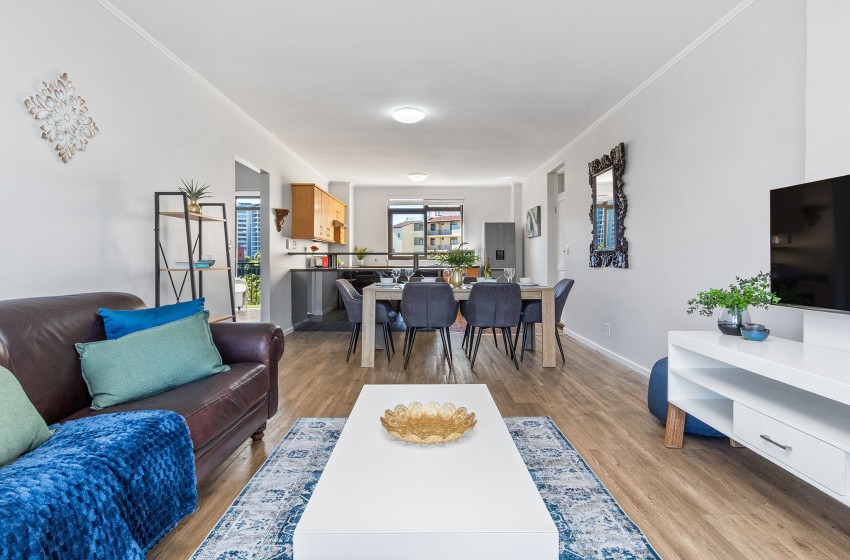 Situated in the heart of the vibrant suburb of Century City, Cape Town, at the Island Club, you will find this elegantly designed two-bedroom apartment comfortably accommodating up to four guests.