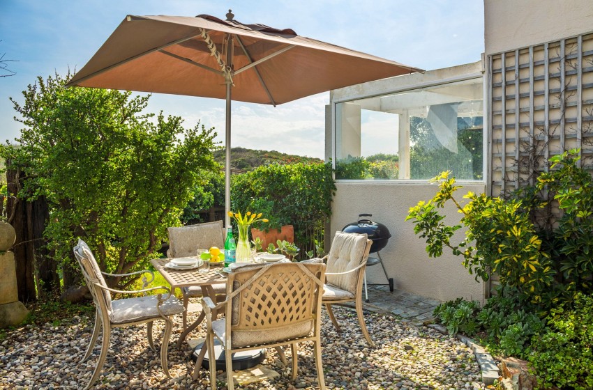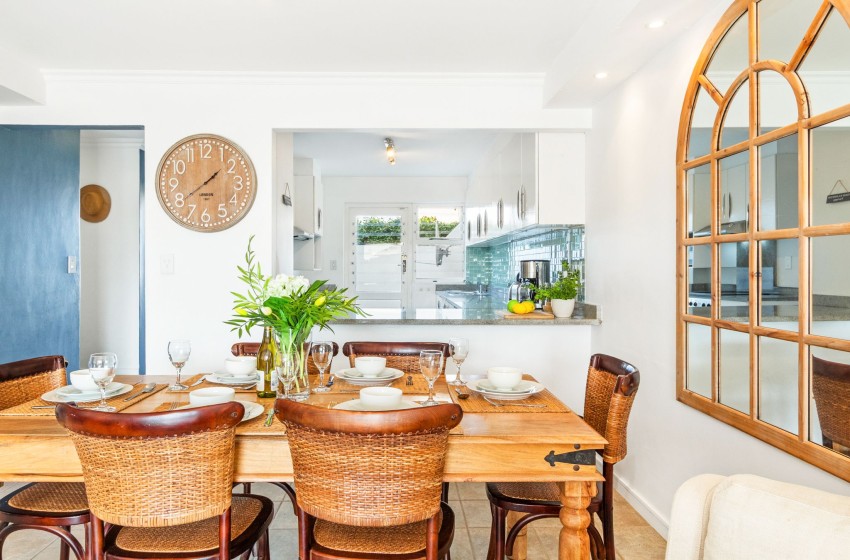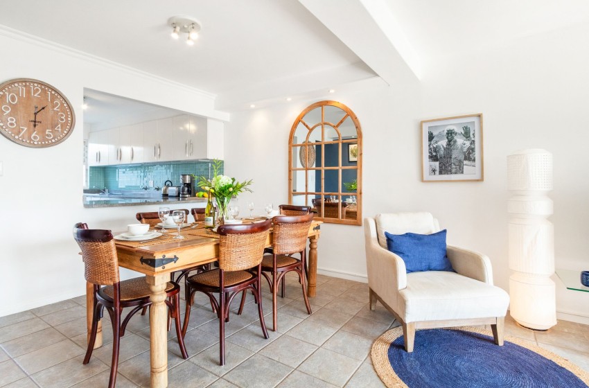 Travellers can relax in style and admire the picture-perfect view of Table Mountain in this 2-bedroom, 2-bathroom home. This spacious apartment can accommodate 4 guests and boasts two floors with a fully equipped kitchen, 6-seater dining area and lounge with a large flat-screen TV with DSTV dominating the ground floor. The main living area flows effortlessly to a patio and garden with casual seating and a weber braai - the perfect spot for entertaining guests or simply relaxing with a glass of wine and a good book!