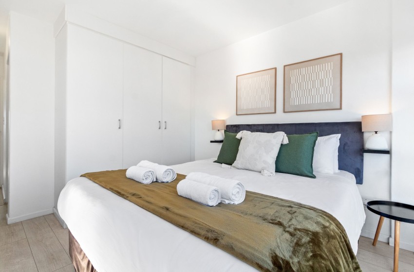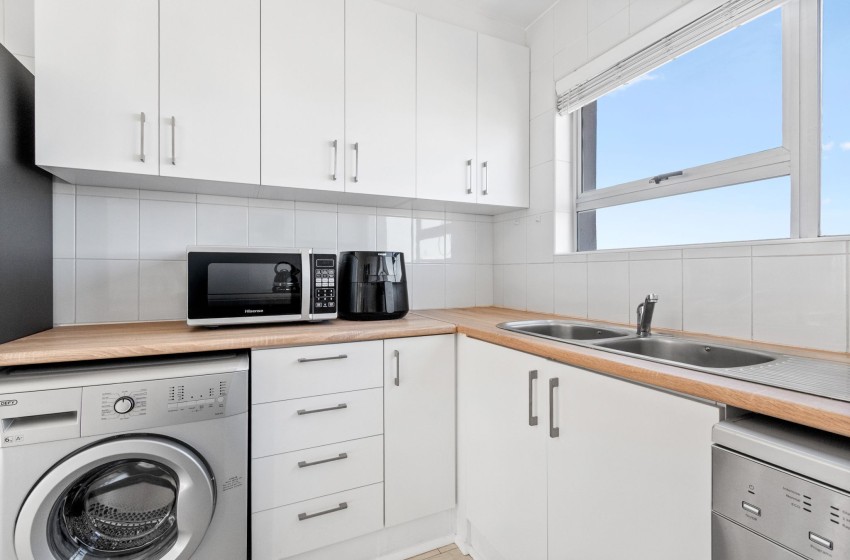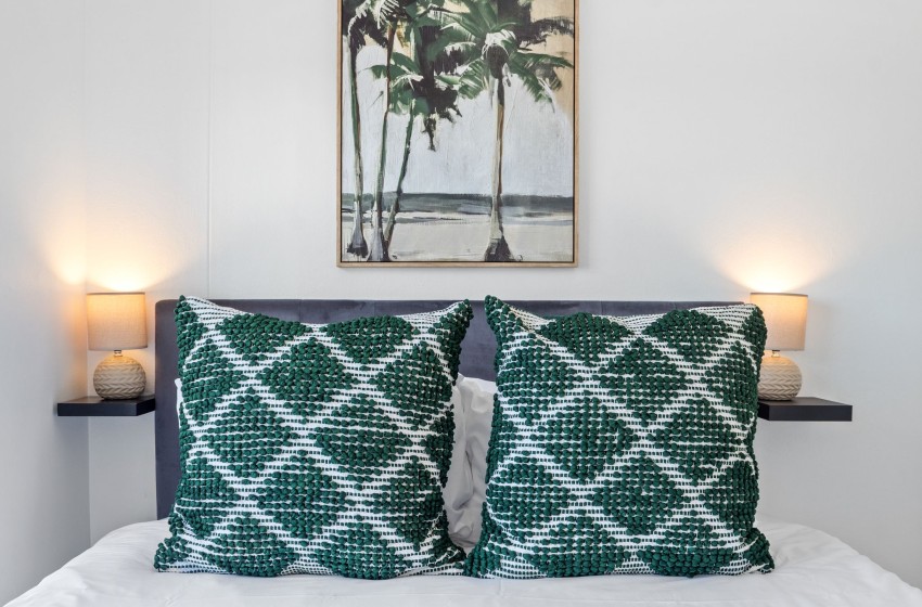 This two-bedroom apartment has a spacious, open-plan design and is beautifully decorated, providing a homey feel. The kitchen is fully equipped with everything you’ll need for a comfortable self-catering experience, including additional appliances such as an air fryer, dishwasher, and washing machine for added convenience. The dining space features a dining set with seating for four, while the lounge features a comfy sofa and a mounted flat-screen television. Guests will enjoy internet access throughout the property.