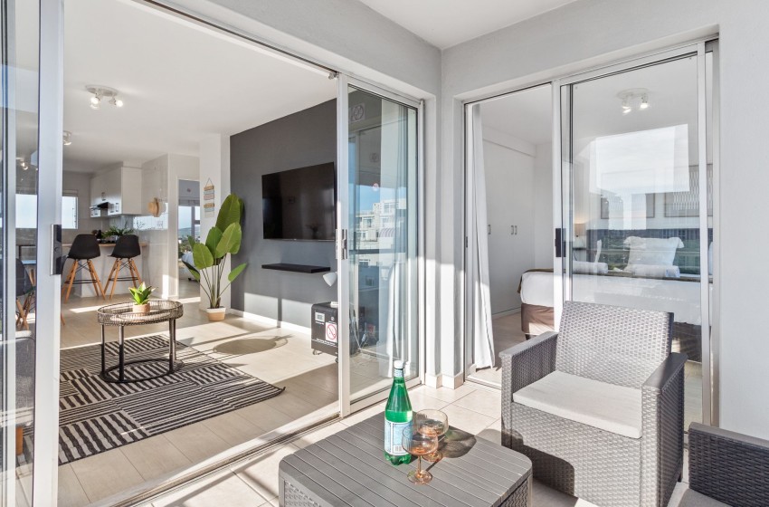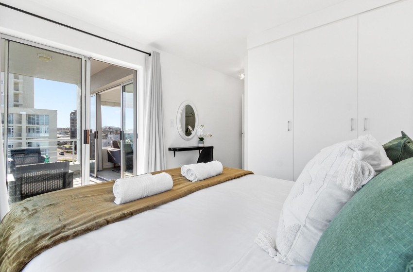 A glass sliding door opens onto the balcony, where you’ll find a comfortable outdoor seating area, the perfect spot for you and your loved ones to sit back, relax, and soak in the breathtaking ocean views. Blouberg is renowned for its kitesurfing, so don’t be surprised if the sky comes alive with colourful kites drifting by.