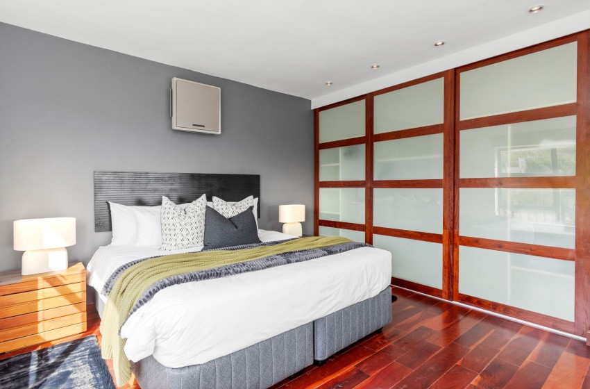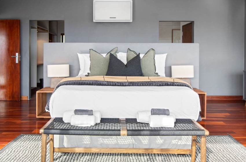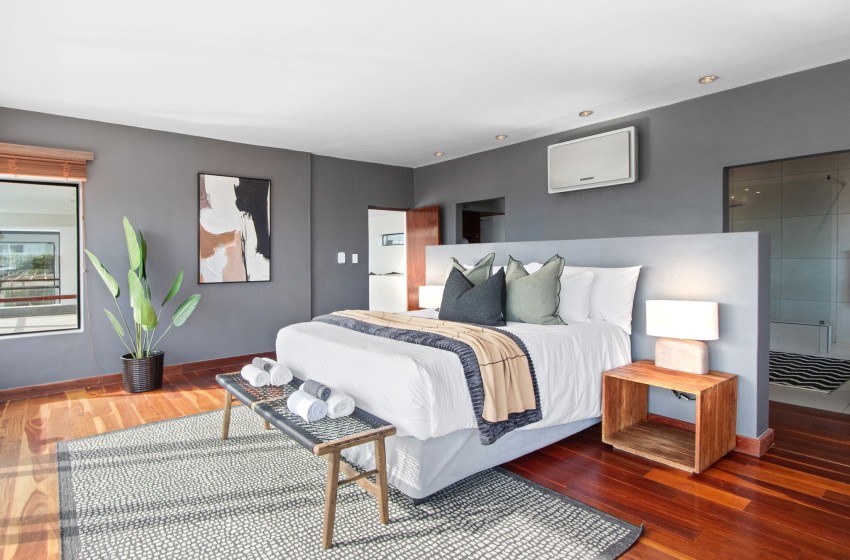 Discover this picture-perfect coastal retreat at Restio View 11 in Gordon’s Bay. It’s a perfect holiday destination for up to six people. This beautiful house offers three spacious bedrooms, each with an ensuite bathroom. The master bedroom features a king bed, a balcony and air conditioning. The second bedroom includes air conditioning and king bed, while the third bedroom has two single beds and air conditioning.