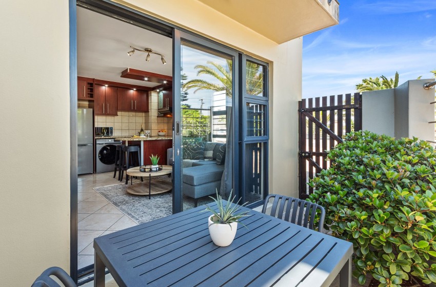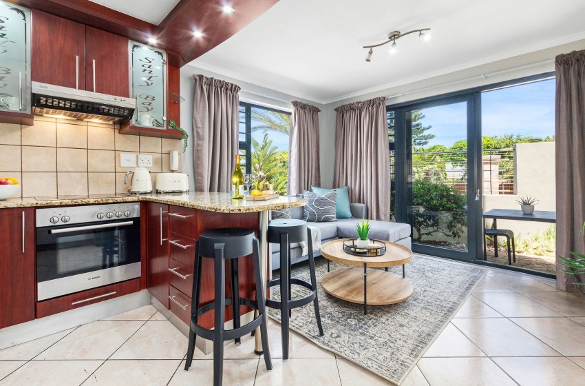 Located in a quiet area, this secure complex is close to all amenities, allowing guests to either explore Bloubergstrand at their leisure or stay in and make use of the communal swimming pool, kids' playground, and braai area.