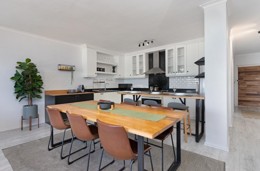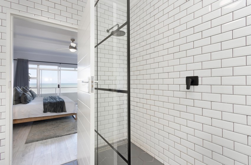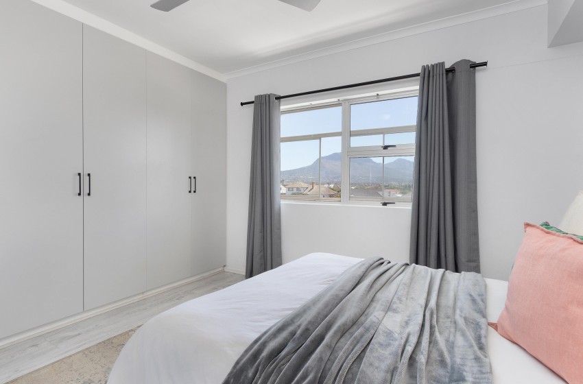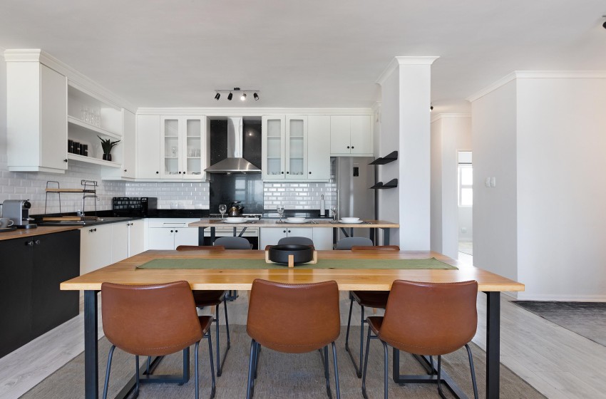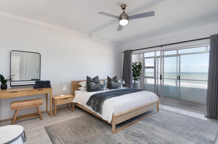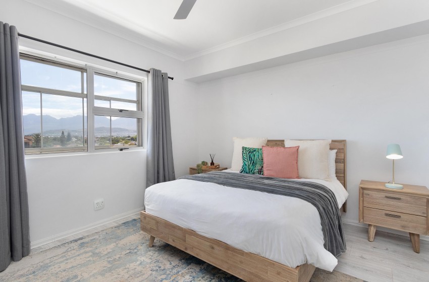 This spacious 130m² apartment features three bedrooms accommodating up to six guests comfortably. The open-plan kitchen, dining, and lounge areas seamlessly flow onto a wide balcony, where large windows frame the mesmerising view of False Bay. The kitchen is fully equipped with SMEG appliances, a coffee machine, a washer and dryer, and all the modern conveniences to enhance your stay.