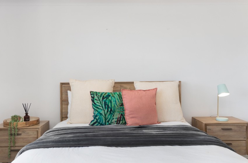 Each bedroom has beautiful crisp finishes, with Bedroom 1 featuring a queen bed, Bedroom 2 a double bed, and Bedroom 3 another double bed. The 2 bathrooms offer modern amenities, including showers and toilets.