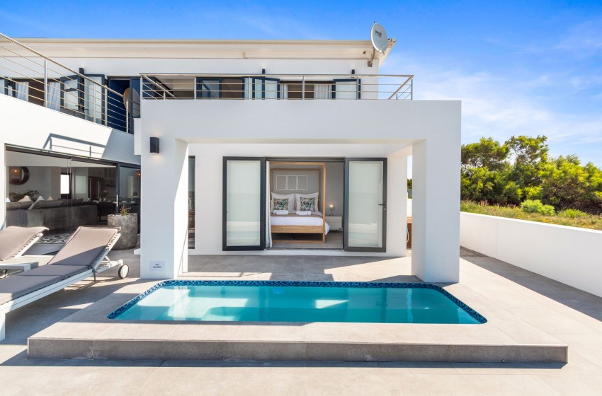 Step outside, where you will find comfortable outdoor seating and two sun loungers, a heated swimming pool, and a stairway leading directly to the beach, where unspoiled sands and endless sea views await. Guests will have access to two kayaks and two stand-up paddleboards, with lifejackets included, for water adventures. You will receive a complimentary bottle of red wine upon arrival, as well as two bags of firewood to enjoy the indoor braai and newly installed wood-fired hot tub on the premises.
