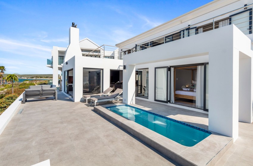 Located along the scenic West Coast, St Helena Bay is a charming coastal community that rests along the shores of the bay. Here, you will find the Shelley Point Estate, home to this exquisite four-bedroom beachfront villa.
