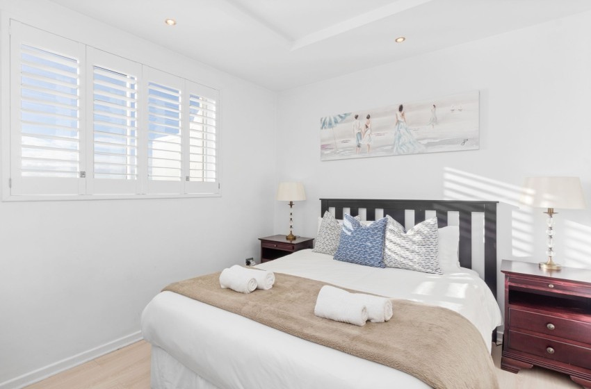 This stunning oceanfront apartment in Bloubergstrand offers a luxurious and spacious retreat with a capacity for 6 guests. The accommodation includes three bedrooms. The master bedroom features a king-sized extra long bed and an ensuite bathroom with a shower and toilet, the second bedroom has a queen extra long bed, and the third bedroom has two single extra long beds. There are two bathrooms in total, with the second bathroom offering a shower, bath, and toilet for shared use. Towels and linen are provided