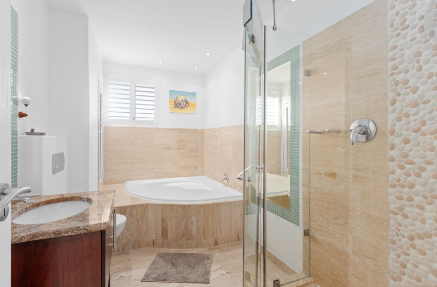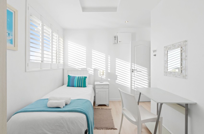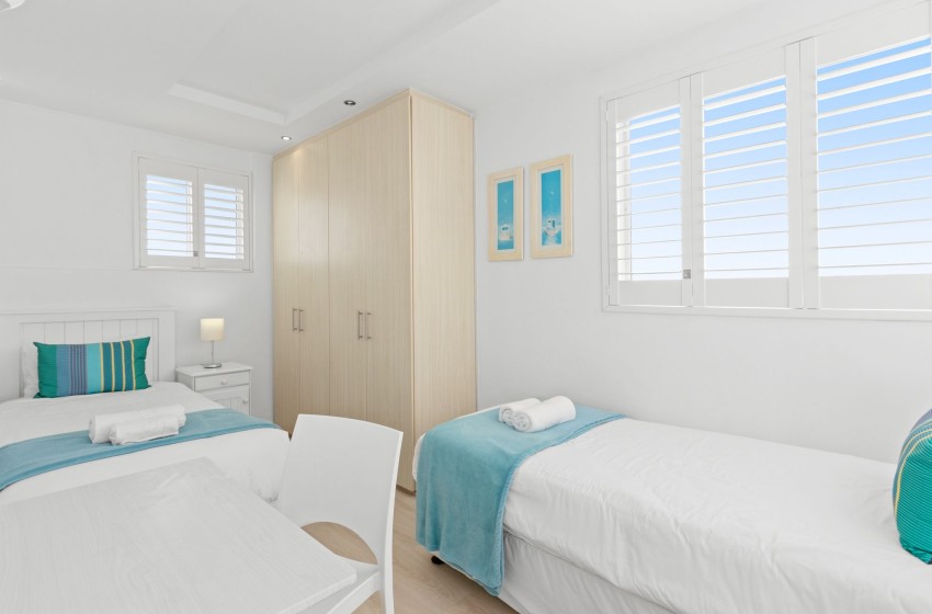 The apartment boasts a comfortable open space lounge and dining area with breathtaking sea views creating a family-friendly environment. The lounge is fitted with a TV for in-room entertainment, complemented with internet access. For those who prefer to stay in, the fully equipped kitchen includes an oven, refrigerator, stove, microwave, toaster, coffee machine, kettle, dishwasher as well as a washing machine and a tumble dryer.