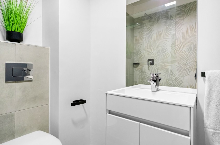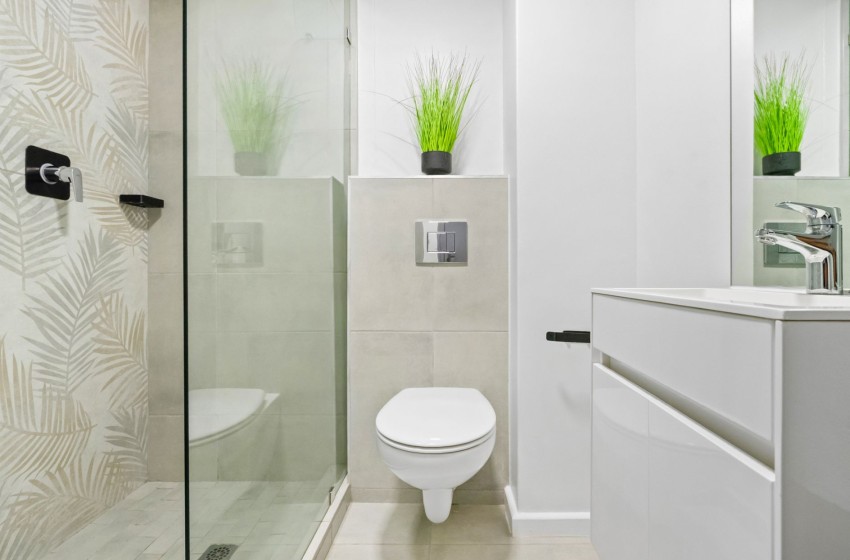 The living space includes a dining set that can seat up to four guests. Additionally, there is a flatscreen television with access to streaming services like Netflix, providing great entertainment options. This is all situated next to a comfortable double bed with plush bedding. The bathroom is modernly designed and fitted with a spacious, walk-in shower, a washbasin with vanity as well as a toilet. Linen and towels are included with your stay.