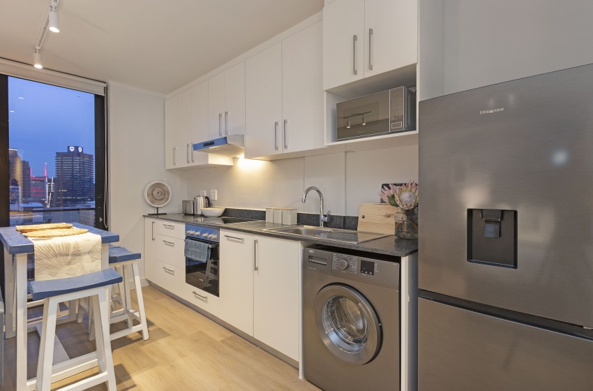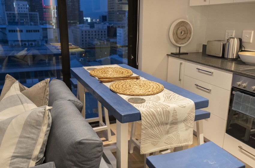 In the pulsating heart of Cape Town's central business and entertainment hub lies The Tokyo 1508, a premier apartment in the city centre, on the top 15th floor.