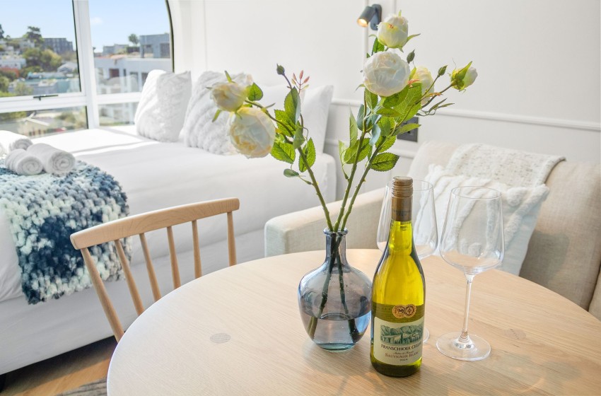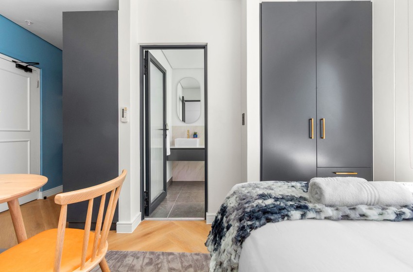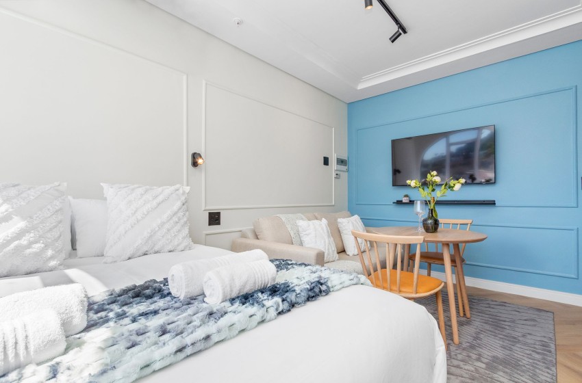 On the 7th floor, The Valour 702 is a contemporary and stylish studio apartment offering a seamless combination of modern lifestyle and stunning views. Located in the lively neighbourhood of De Waterkant, known for its bustling atmosphere, close proximity to Cape Town’s city centre, and easy access to the V&A Waterfront, it is an exceptional location for couples, business travellers, or solo travellers eager to explore the best of the city.