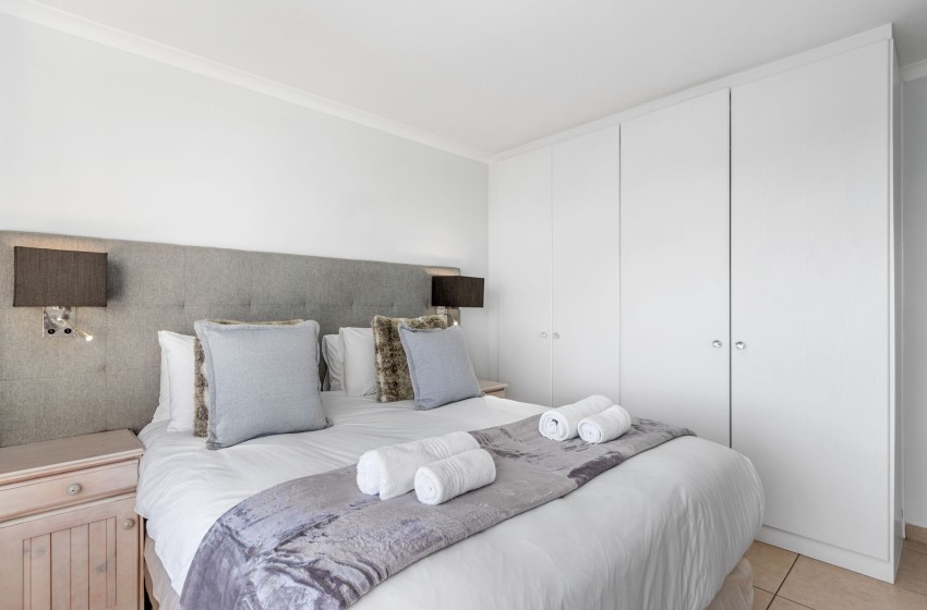 Welcome to The Waves 302, a stunning apartment offering a blend of comfort and style in the vibrant suburb of Table View, just north of Cape Town’s city centre. This family-friendly retreat accommodates up to 4 guests, featuring a luxurious king-sized bed in the master bedroom with an ensuite bathroom complete with a shower and toilet. The second bedroom offers two single beds and is served by a second bathroom with a bath and toilet.
