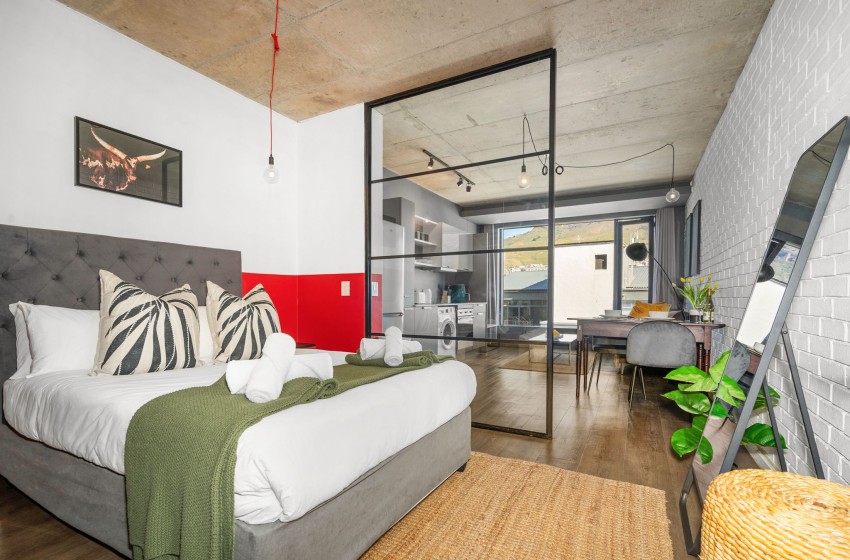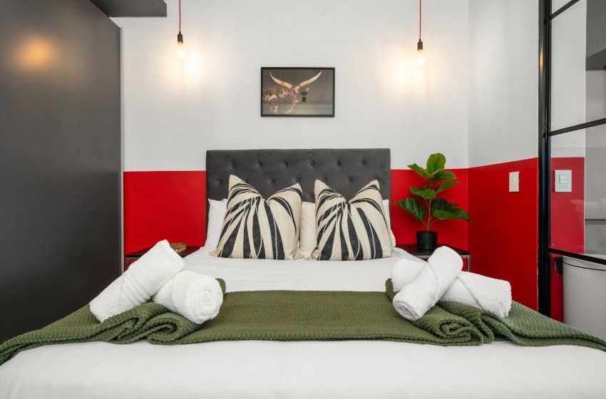 This urban-style studio apartment in Woodstock, Cape Town comfortably accommodates up to two guests.