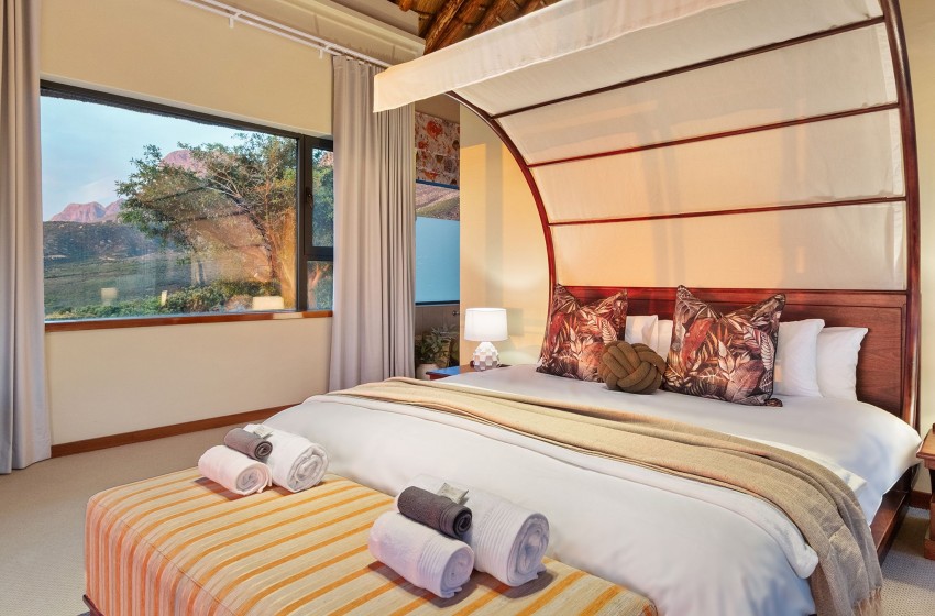 Knorhoek Estate is home to the Idiom Wines restaurant, located just minutes from the villa and offering fine dining in a beautiful vineyard setting. Somerset West provides easy access to local shops, attractions, and renowned wineries, and attracts visitors from around the world with its magnificent views of the Helderberg and Hottentots Holland mountain ranges and sweeping bay vistas. While staying here, guests can enjoy wine tasting, explore the Helderberg Nature Reserve, or visit Cheetah Outreach for a unique wildlife experience.