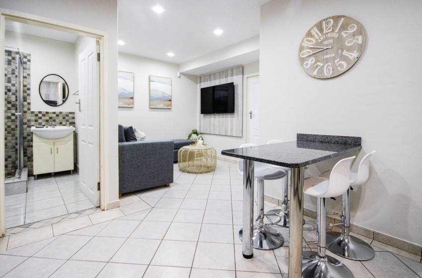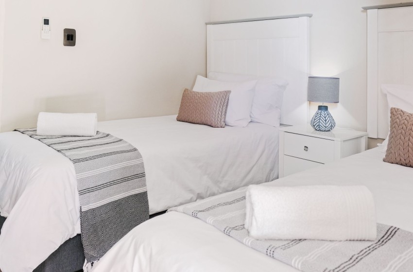 Welcome to Villa Mia, a delightful apartment nestled in the charming coastal town of St Lucia, KwaZulu Natal. This self-catering accommodation is ideal for a group of four, offering a relaxing escape with modern conveniences. The apartment has two inviting bedrooms, one with a comfortable double bed and the other with two single beds; both are air-conditioned, ensuring a cool retreat after a day of adventure. A shared bathroom with a shower and toilet caters to guests’ needs, and fresh, crisp linen and towels are provided.