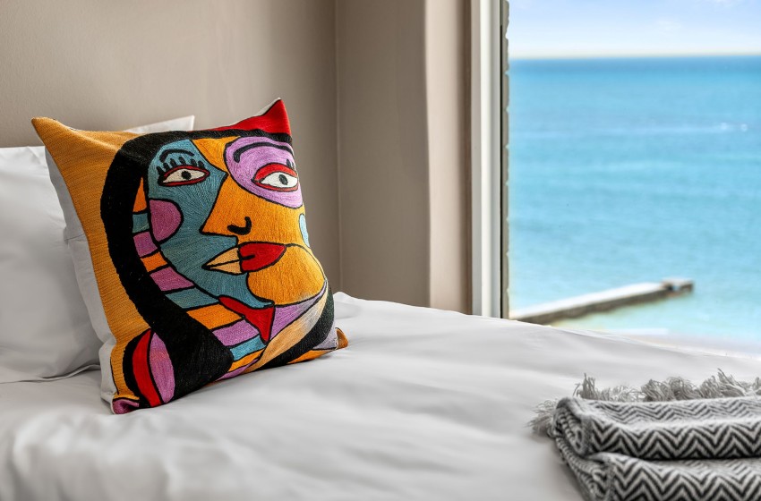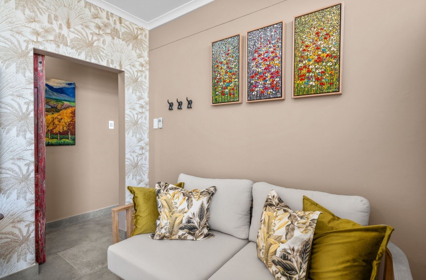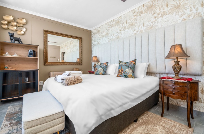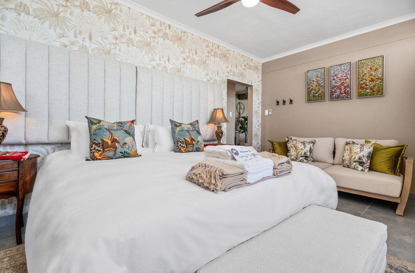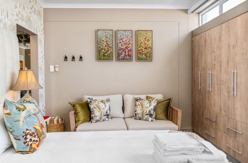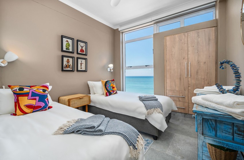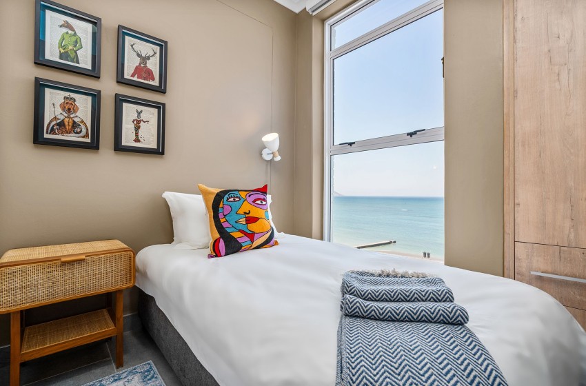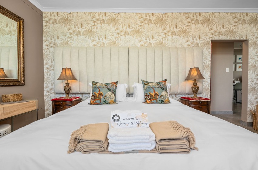 Waves & Wildflowers is located in the stunning coastal suburb known as Strand in Cape Town. You’ll wake up to breathtaking ocean views every day at this one-of-a-kind beachfront apartment. It’s perfect for sea lovers, wanting to enjoy the panoramic vistas of the beach, False Bay, and surrounding mountains from the comfort of their living space.