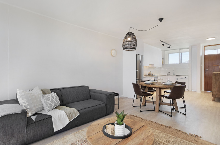 This modern apartment provides all that you need for an unforgettable stay, with luxury and comfort combined. The open plan design creates a spacious living area, with large windows allowing an abundance of natural light in and spectacular ocean views. The newly renovated and fully equipped kitchen includes a dishwasher for your convenience. The dining area provides an intimate setting and comfortably seats four people. The lounge area is cozy with a comfortable couch to relax and enjoy your favourite TV shows/movies.
