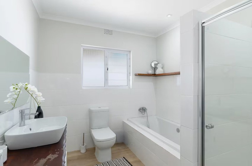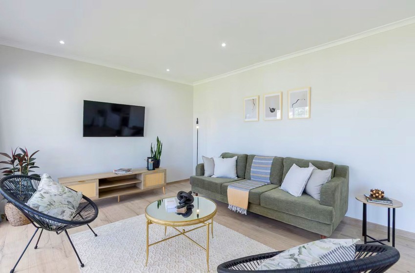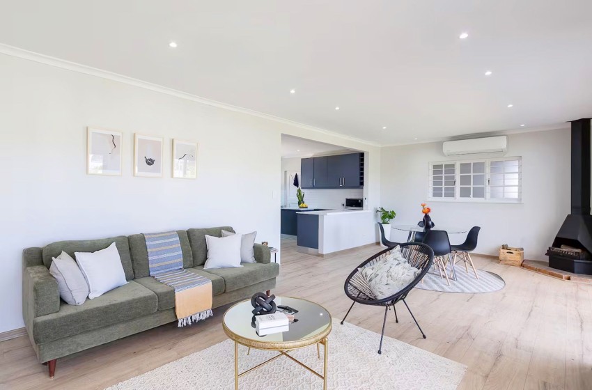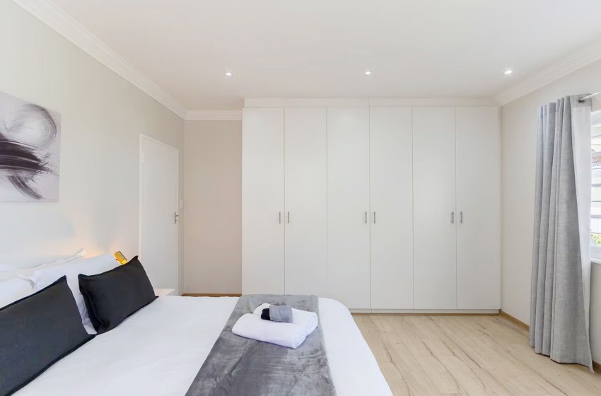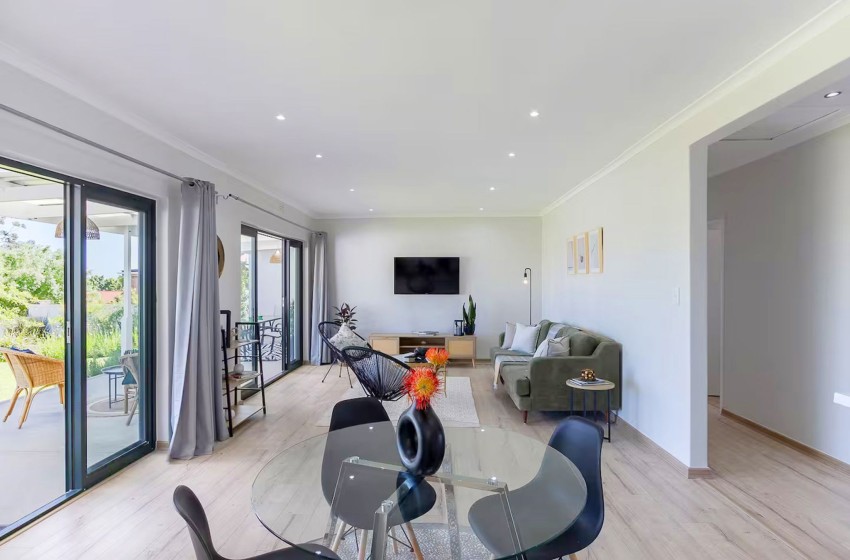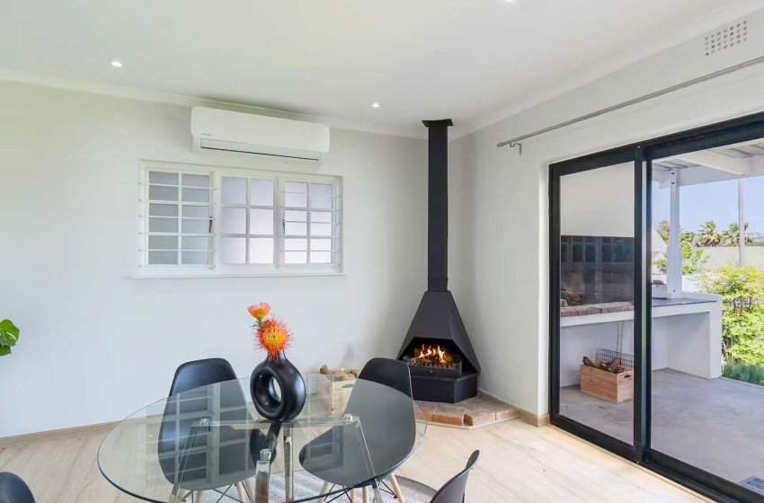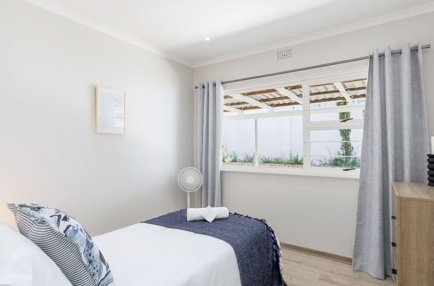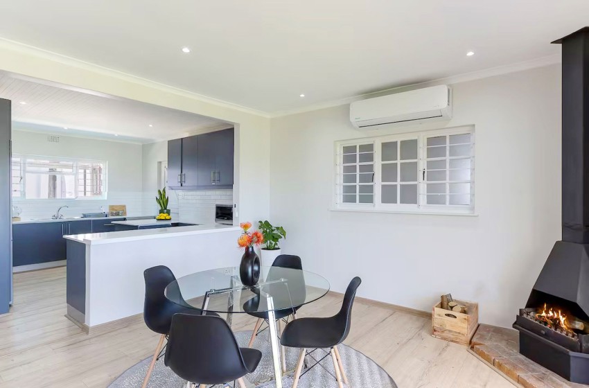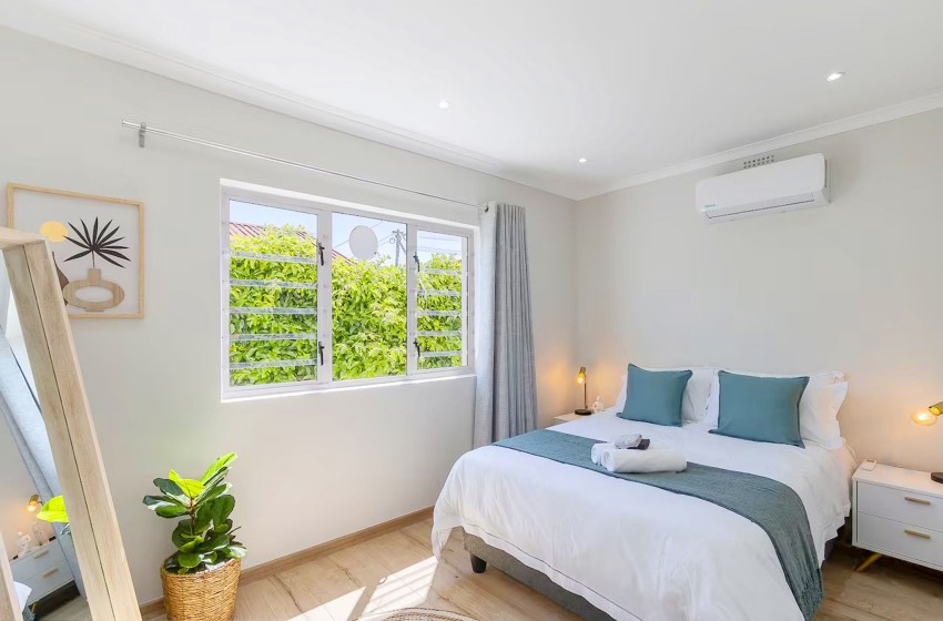 Guests will appreciate the spacious kitchen that’s fully equipped for a self-catering stay. The walls are lined with a white tile backsplash that perfectly complements the sleek-styled counters and cabinets, giving the kitchen a modern feel. Air conditioning can be found throughout the property, assuring that the space stays nice and cool during the Western Cape’s hot summer temperatures.
