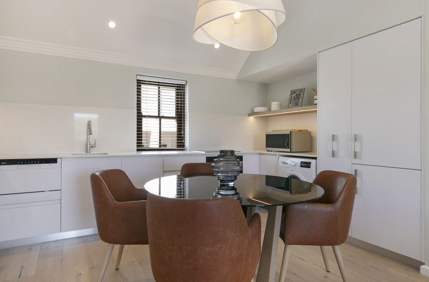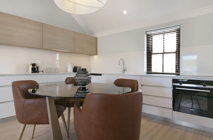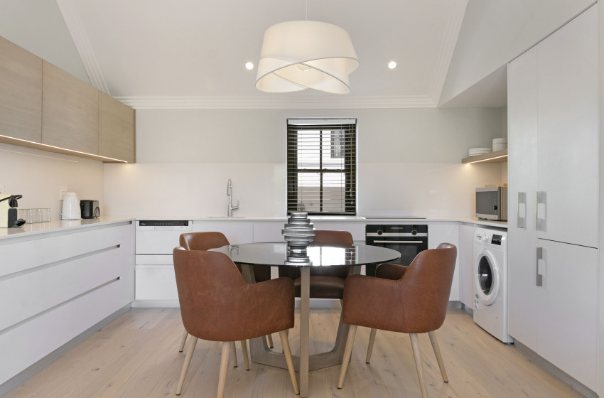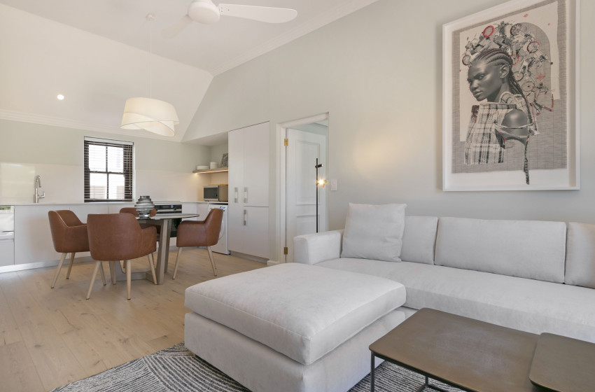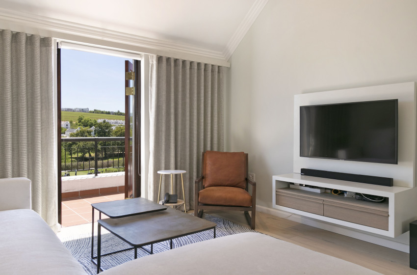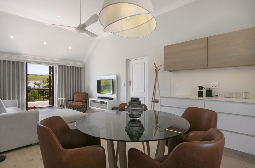 De Zalze Winelands Golf Lodges single-bedroom apartment is ideal for any couple looking to break away from the hustle and bustle for a few nights. The kitchen area is spacious; while housing all the appliances needed for a carefree self-catering holiday. Everything from a kettle all the way up to a washing machine; you will never have to worry about a thing! A warm, welcoming atmosphere, is accentuated by an open-plan dining and living area. The dining room table can seat four guests, while the living area hosts a comfortable lounge suite. Fibre internet is available to you, with a flat-screen and DSTV further expanding your list of entertainment options.