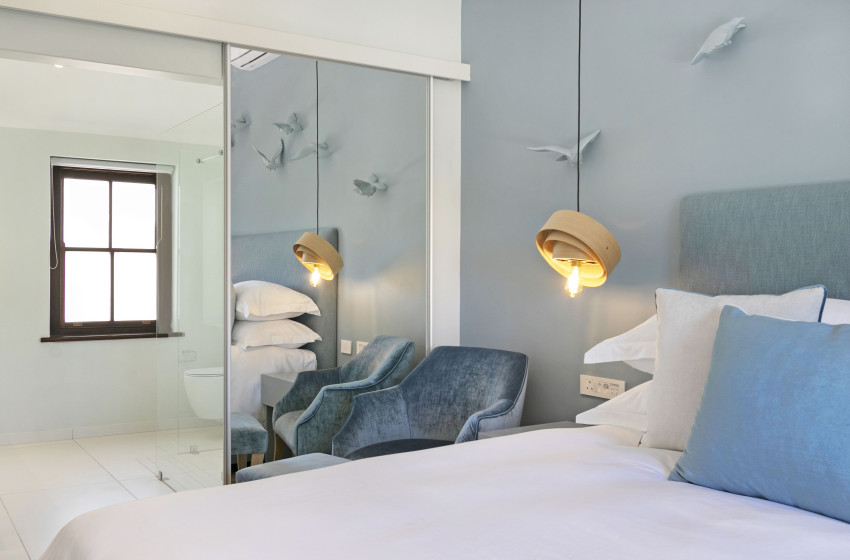 The bedroom strikes the perfect balance between modern design and vintage aesthetics. Two three-quarter beds allow you to freely customize your sleeping arrangements. The en-suite offers you a full suite, with a bath, shower, and toilet – topped off with a pristine, light colour palette.