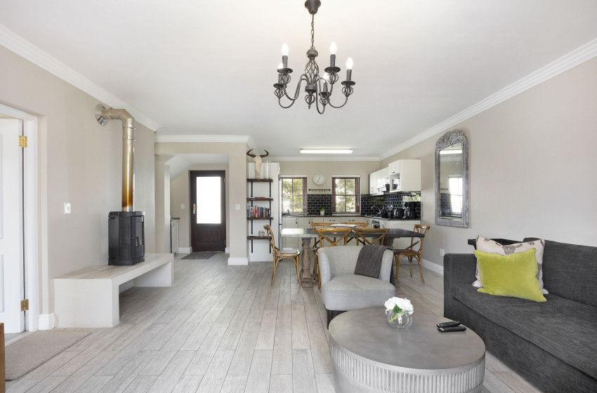 The kitchen area is fully equipped with all the essentials to ensure a comfortable self-catering getaway. A toaster, coffee machine, and kettle ensure the mornings start on the right note with a microwave, dishwasher and washing machine. This 3-bedroom home boasts a modern interior. The open plan living/dining area sports a dining suite. The living area sports a single couch as well as a comfortable lounger. The house has Wi-Fi connectivity as well as a smart TV.
