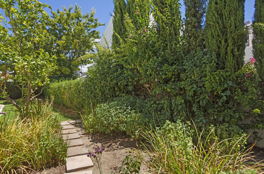 Guests will love relaxing in the charming open-plan family area, complete with a lounge featuring a large flat-screen TV with YouTube, DSTV, and Netflix, all without interruptions from load shedding. There’s a 6-seater dining area and a kitchen fully equipped with every amenity needed to whip up a delicious meal, including an air-fryer, fridge without a freezer and an ice cube machine. A highlight of this home is the doors leading to the patio, furnished with a dining table, where guests can relax in the manicured garden and enjoy alfresco dining in good company.
