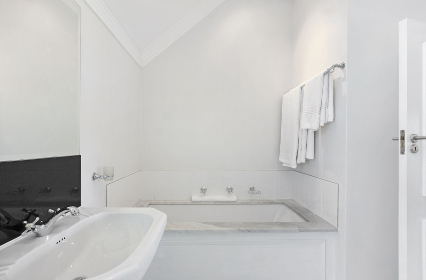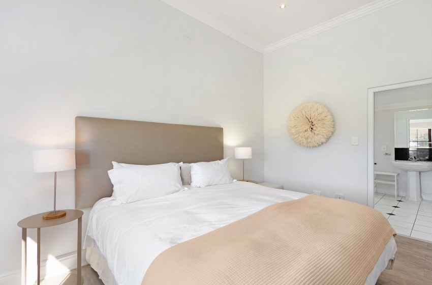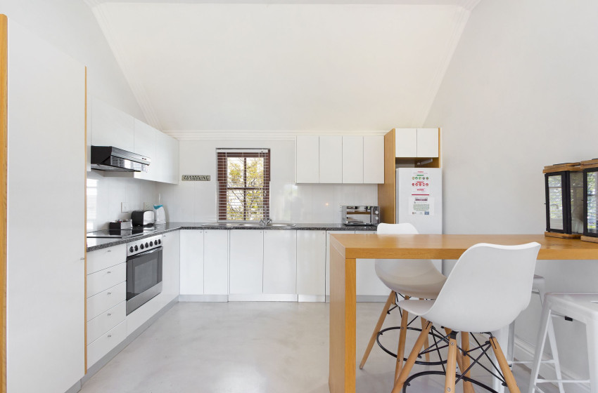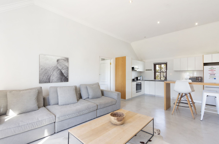 The modern interior contrasts the vintage exterior with cool shades of white and earth tones, thereby delivering a tranquil and welcoming environment. All the essential self-catering appliances are present along with a stunning kitchen area.